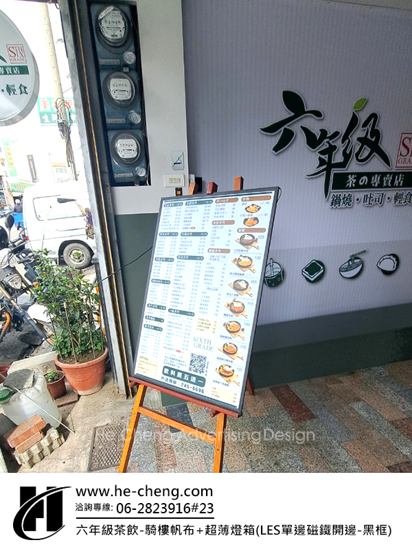 六年級茶飲-騎樓帆布+超薄燈箱(LES單邊磁鐵開邊-黑框)