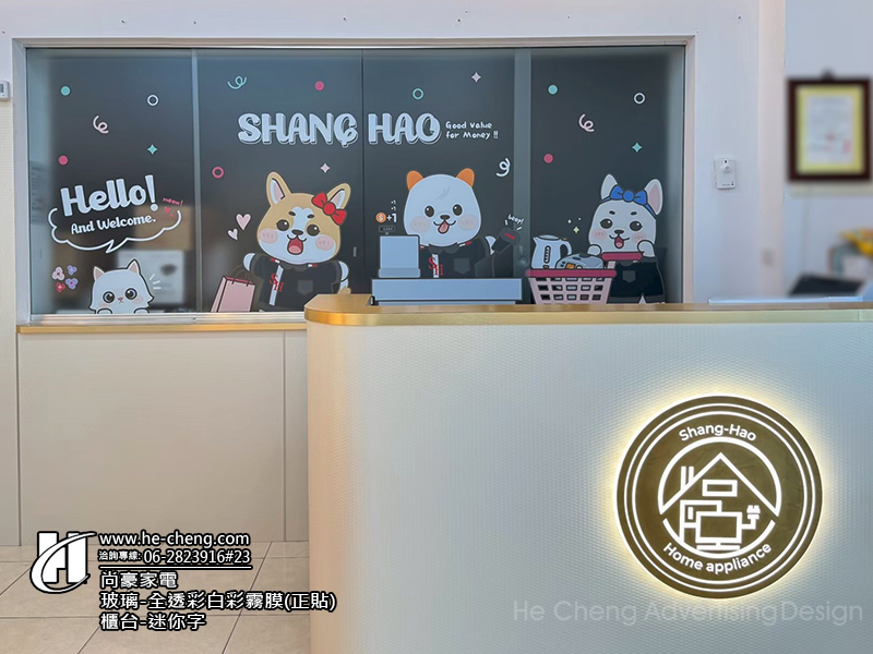 錏板平面立體字+耳朵(平光白)+玻璃-全透彩白彩-霧膜(正貼)