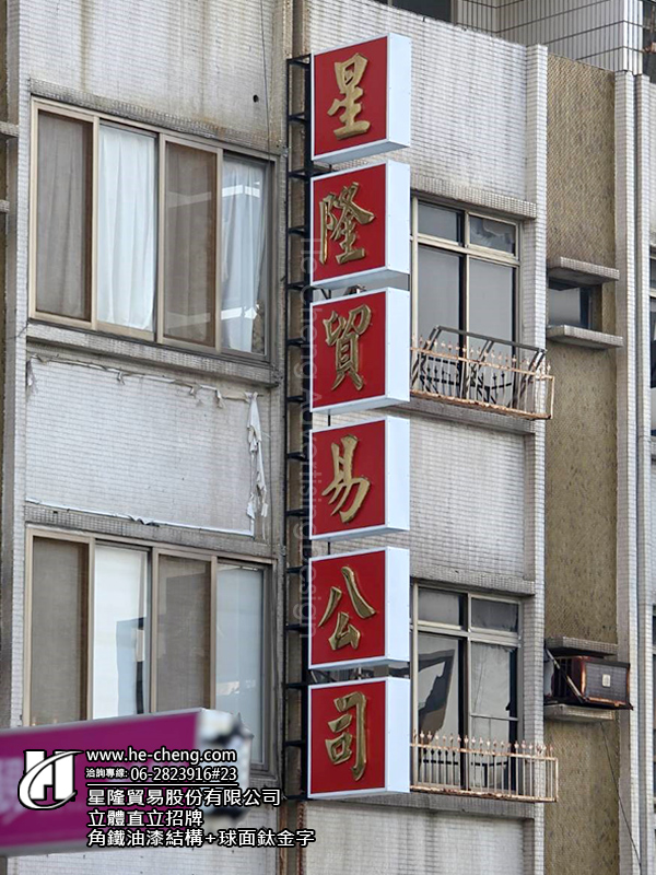 立體直立招牌|角鐵油漆結構・球面鈦金字・耳朵固定