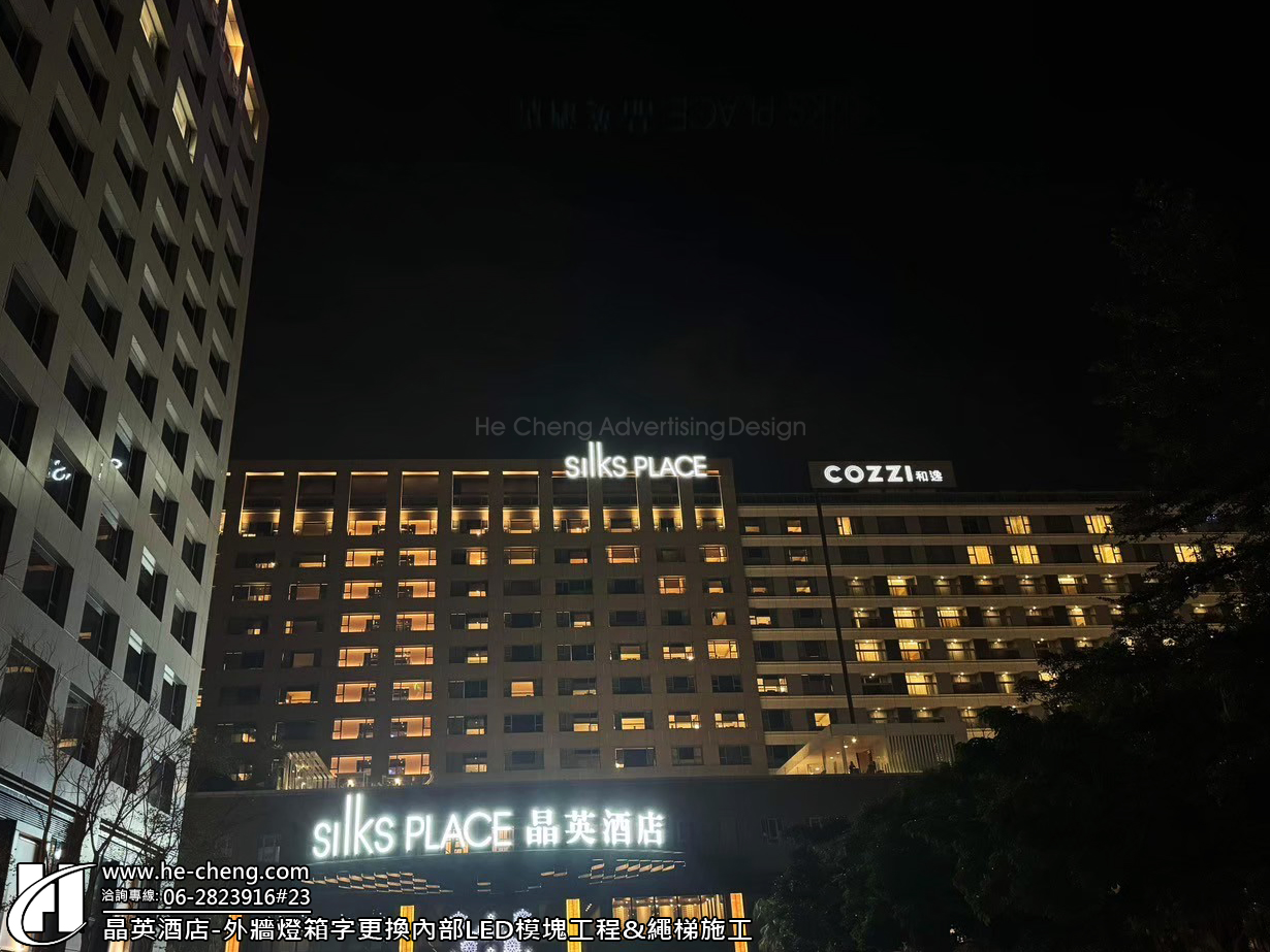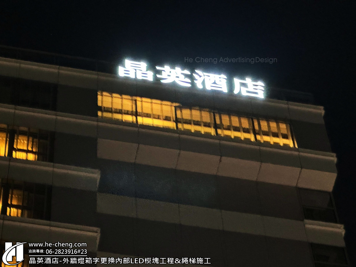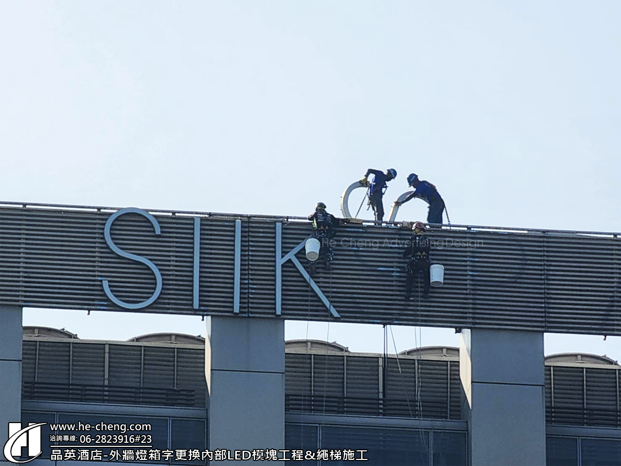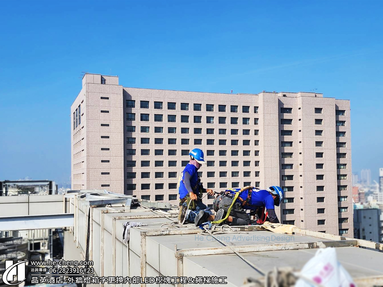 外牆燈箱字更換內部LED模塊工程&繩梯施工