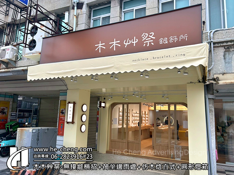 無接縫橫招&荷葉邊雨遮&仿木烙直式&圓形燈箱