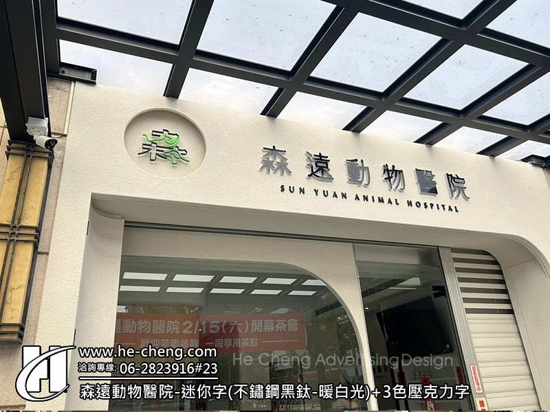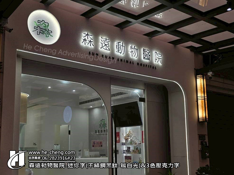 無接縫直招&3F迷你字(黑發白)&鋁擠型圓招 迷你字(不鏽鋼黑鈦-暖白光)&3色壓克力字 形象牆-壓克力字&3色消光綠(正側面) 室內標示-3mm消光黑