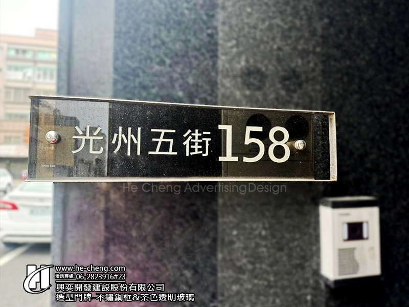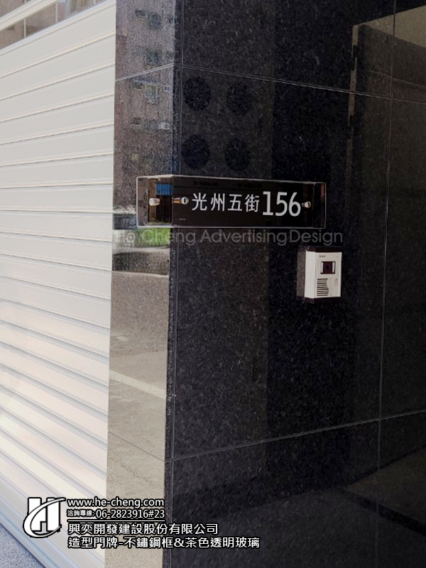 造型門牌-不鏽鋼框&茶色透明玻璃
