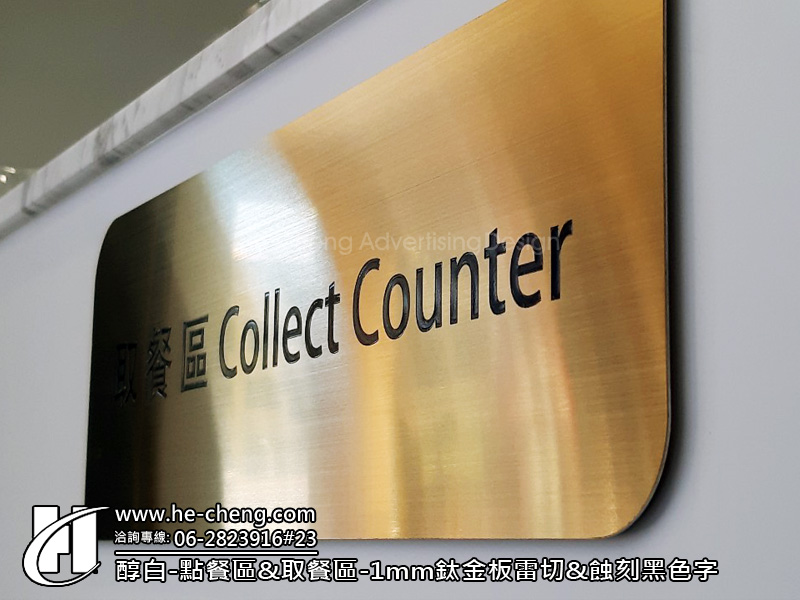 點餐區&取餐區-1mm鈦金板雷切&蝕刻黑色字