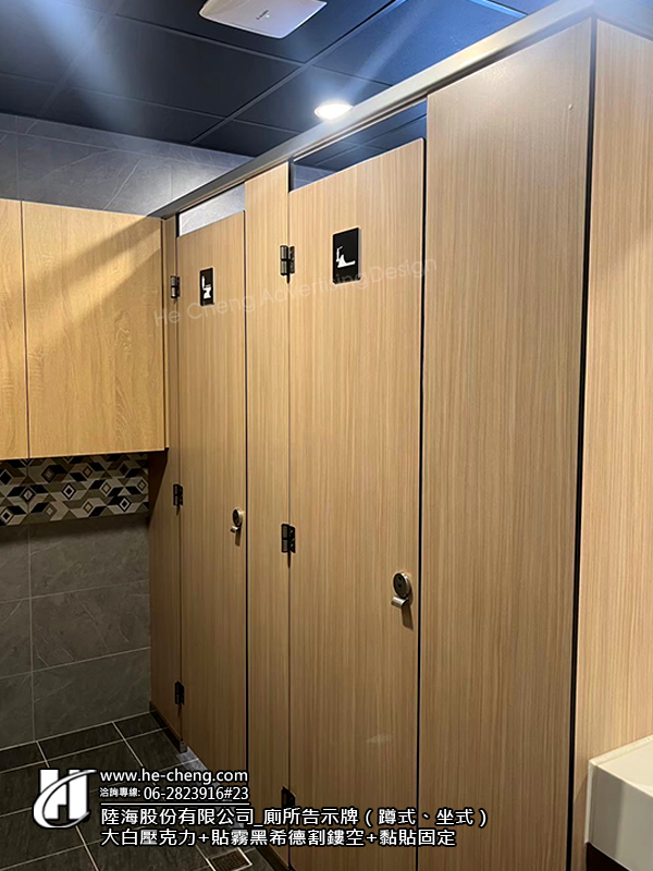 ・廁所告示牌(蹲式、坐式):大白壓克力+貼霧黑希德割鏤空+黏貼固定