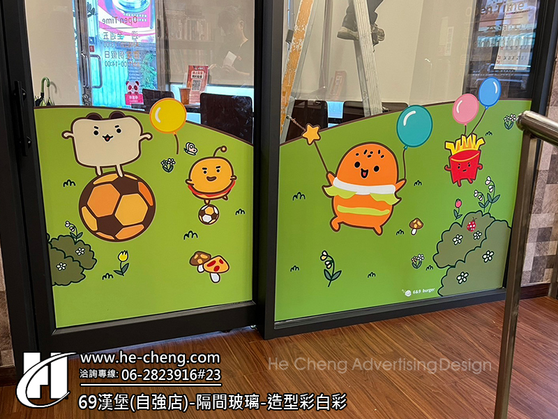 69漢堡(自強店)-隔間玻璃-造型彩白彩